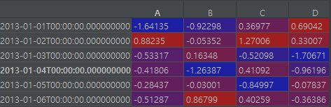 Index(['A', 'B', 'C', 'D'], dtype='object')DatetimeIndex(['2013-01-01', '2013-01-02', '2013-01-03', '2013-01-04',